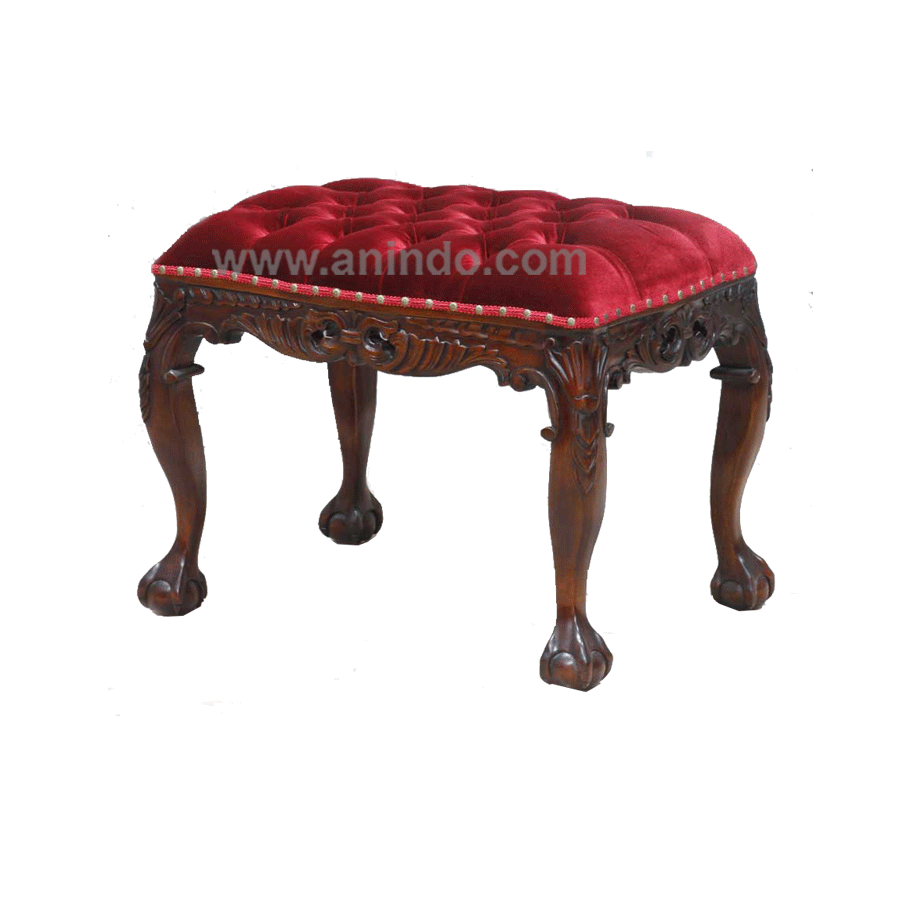 Chippendale leg stool is made of solid mahogany wood in walnut finish. Upholstered in red ...