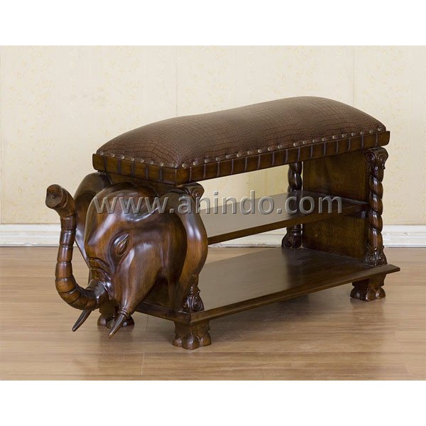 Elephant stool is made of solid mahogany wood in standard finish. Upholstered in brown crocodile faux leather.