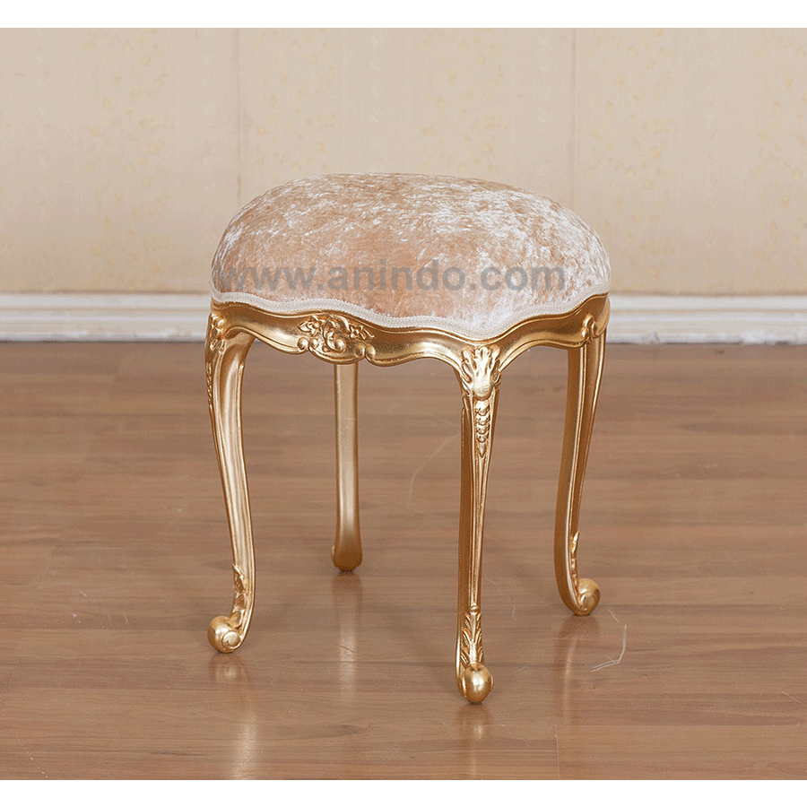 Estilla stool is made of solid mahogany wood in gold painted finish. Upholstered in cream velvet fabric.