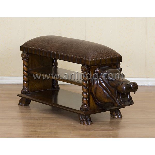 Lion stool is made of solid mahogany wood in standard finish. Upholstered in brown ...