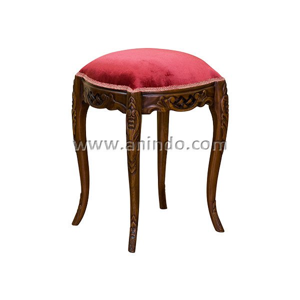 Laura stool is made of solid mahogany wood in pecan finish. Upholstered in red velvet fabric.