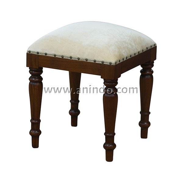 Plain stool is made of solid mahogany wood in walnut finish. Upholstered in blue ...