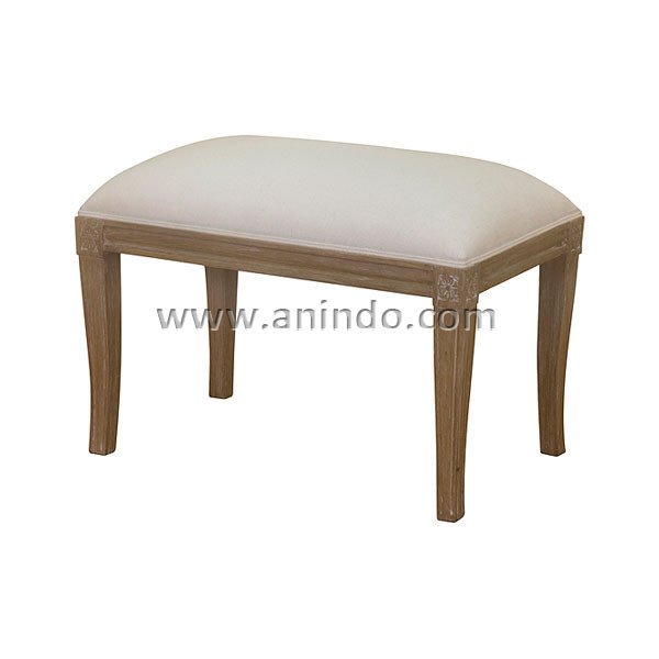 Rectangle stool is made of solid mindi wood in natural finish. Upholstered in linen fabric.
