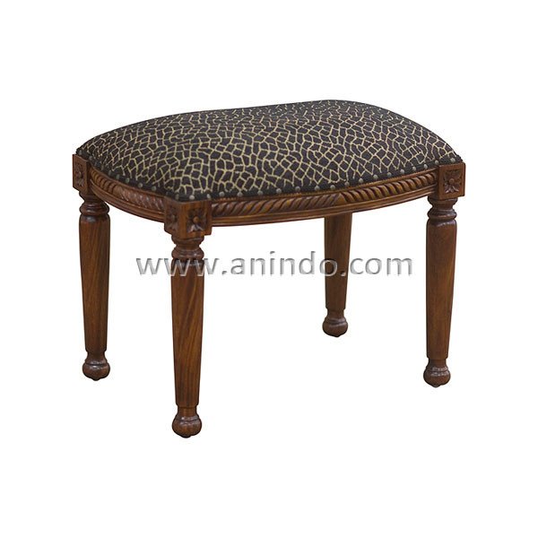 Tigress stool is made of solid mahogany wood in walnut finish. Upholstered in animal print fabric. It is handmade stool.