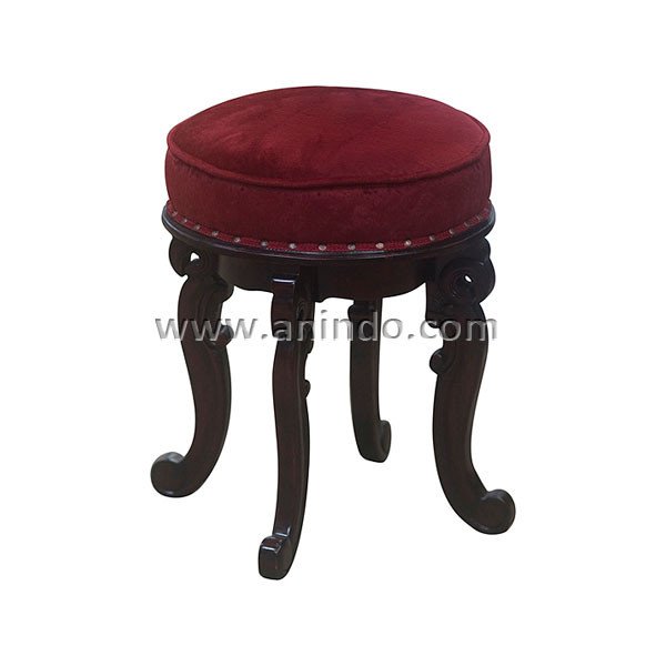 Victoria stool is made of solid mahogany wood in tea brown finish. Upholstered in red velvet fabric.