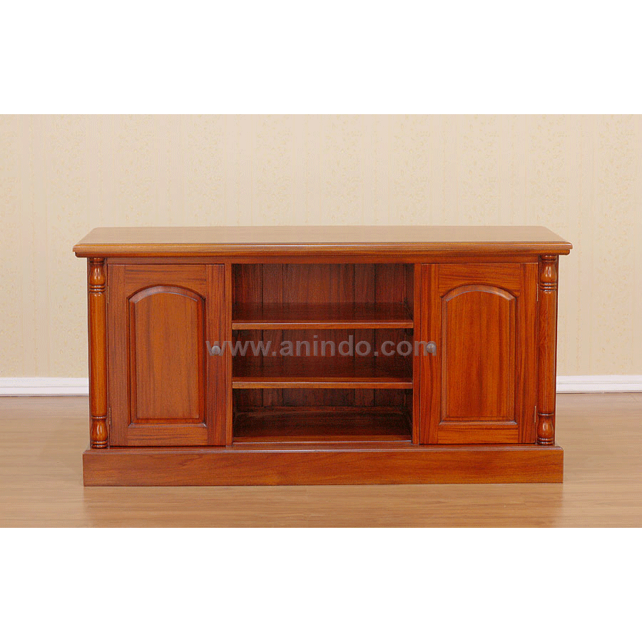 Teak tv cabinet is made of solid teak wood in pecan finish.