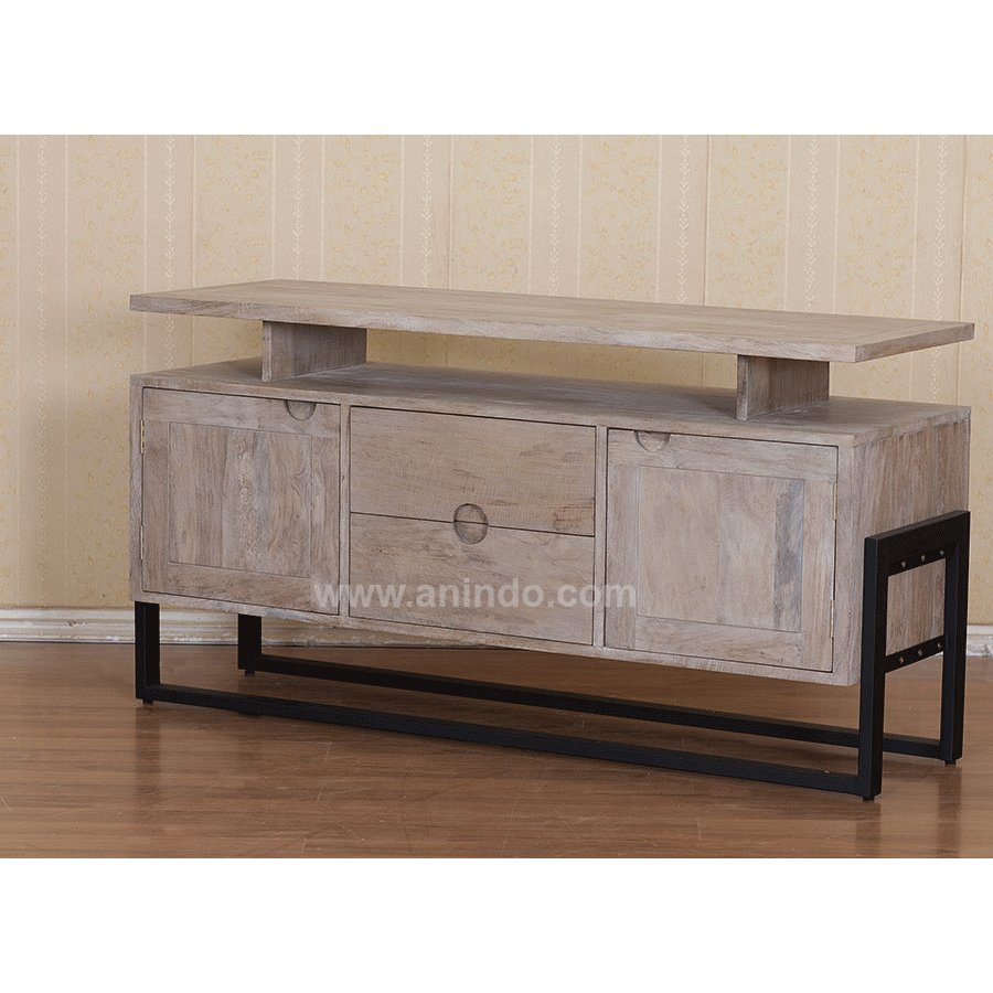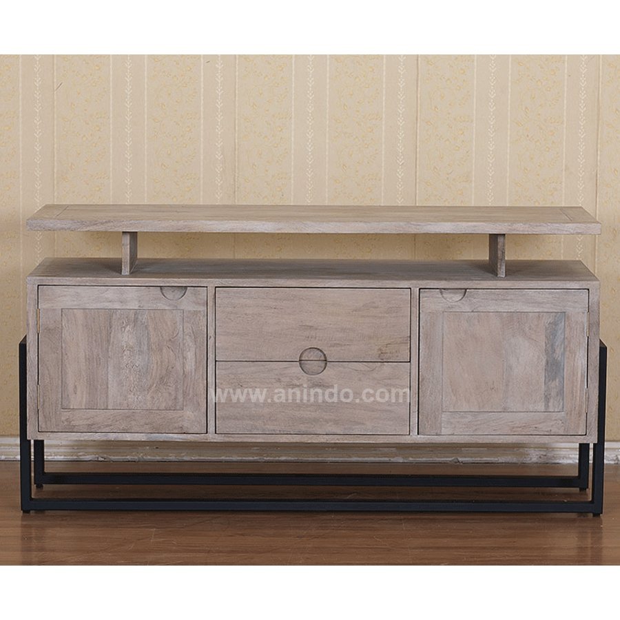 Mango tv cabinet is made of solid mango wood with wrought iron base. With 2 doors & 2 drawers.