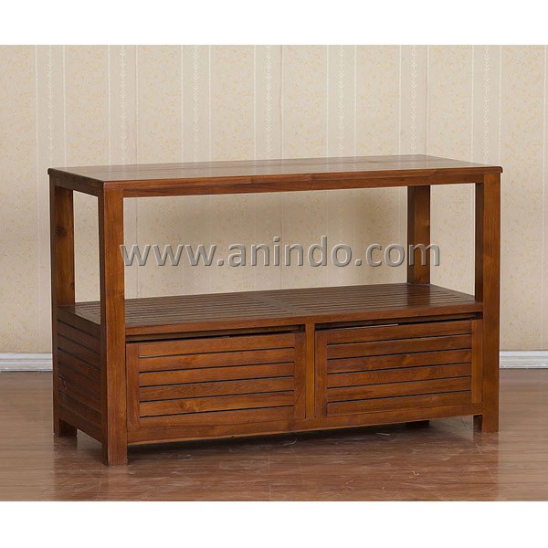 Teak tv cabinet is made of solid teak wood in pecan finish.