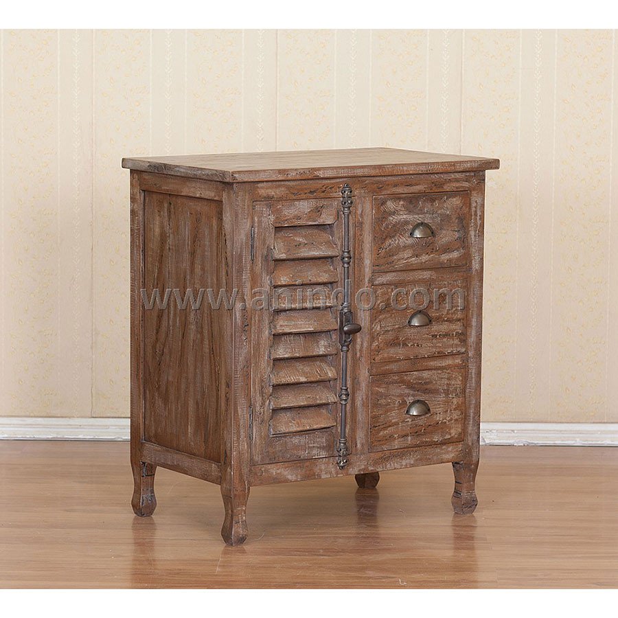 Cabinet krepyak 1 door 3 drawers is made of sustainable solid mango wood in rustic finish. Antique solid brass handles.