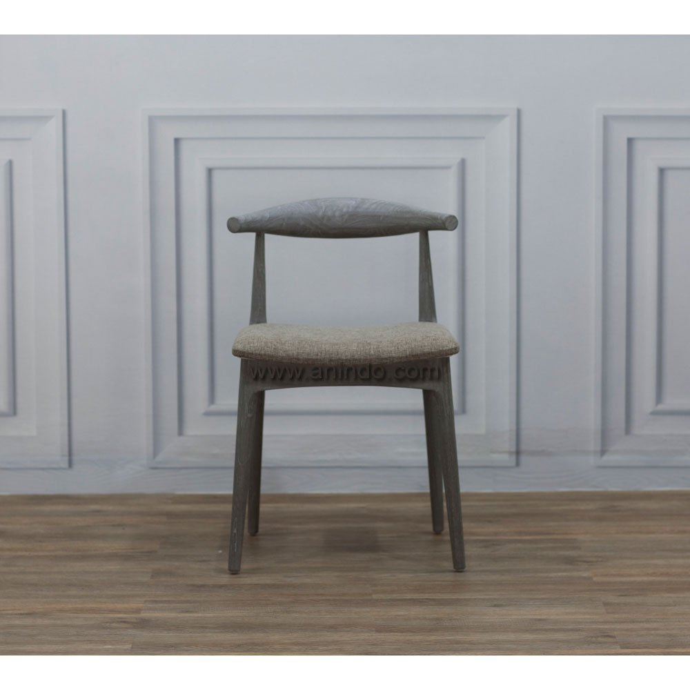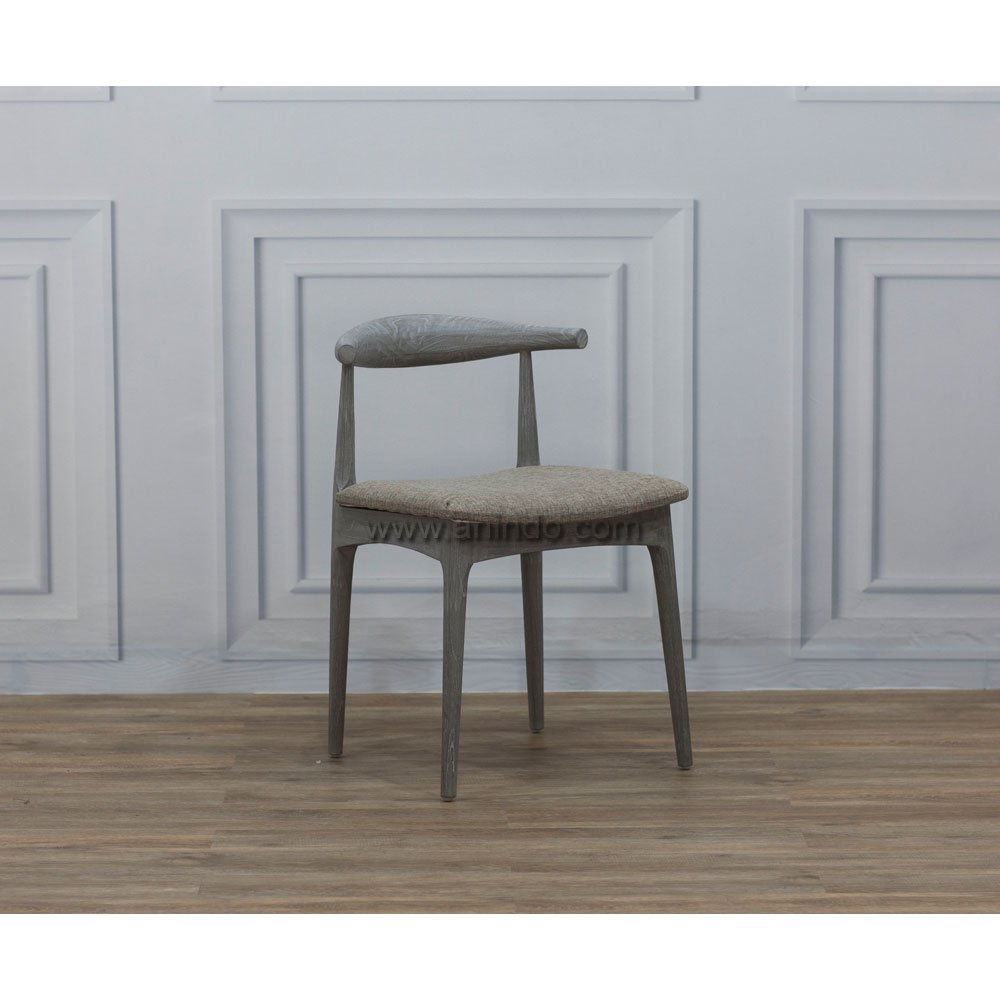 Houston arm chair is made of solid sungkai wood. Antique finish. Upholstered in grey fabric.