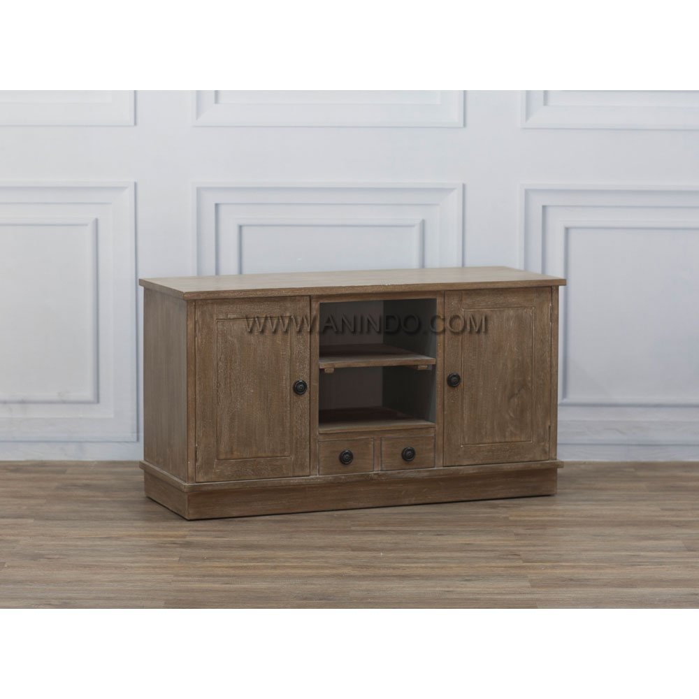 New delhi tv cabinet 2 doors 1 drawer is made of sustainable solid mango wood in antique ...