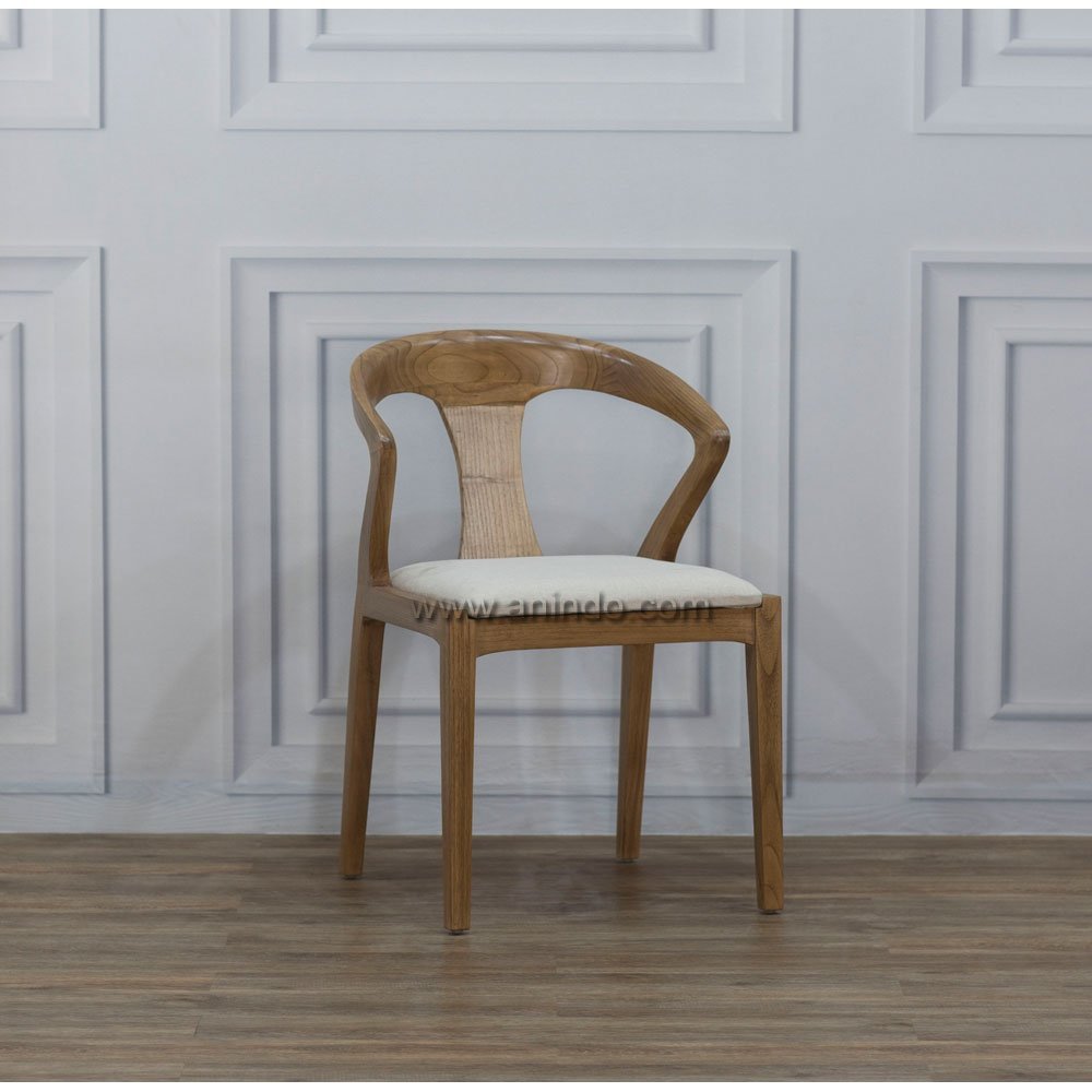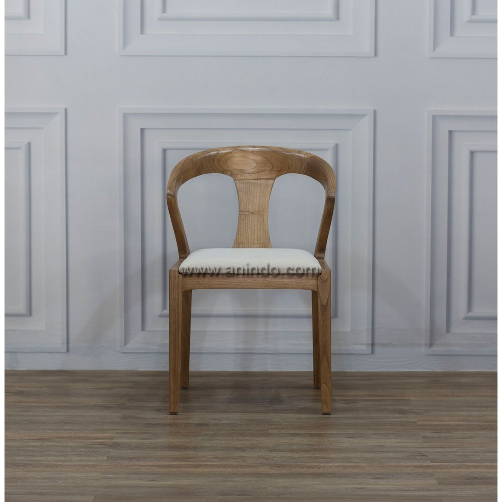 Louisville chair is made of solid sungkai wood. Antique finish. Upholstered in cream fabric.