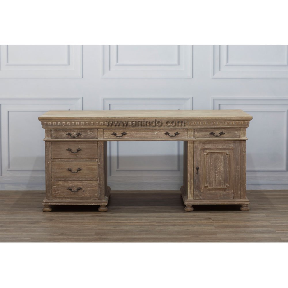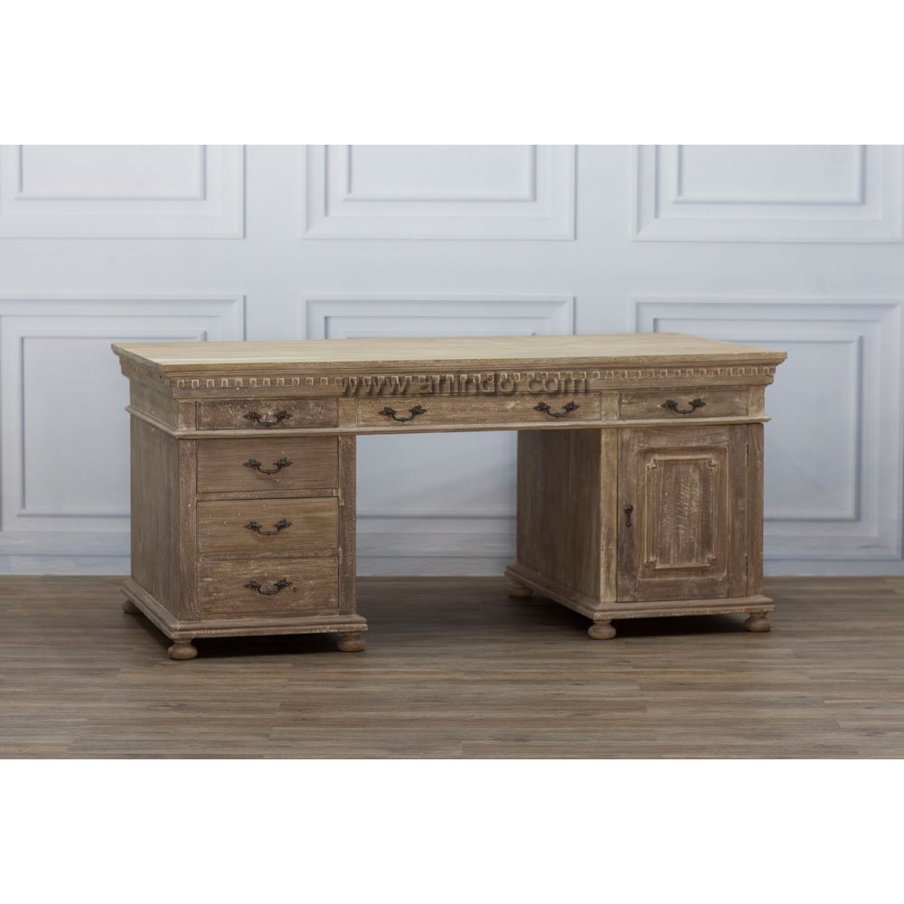 Muhlhausen office fesk 2 doors 12 drawers is made of sustainable solid mango wood. Antique finish. Antique solid brass handles.