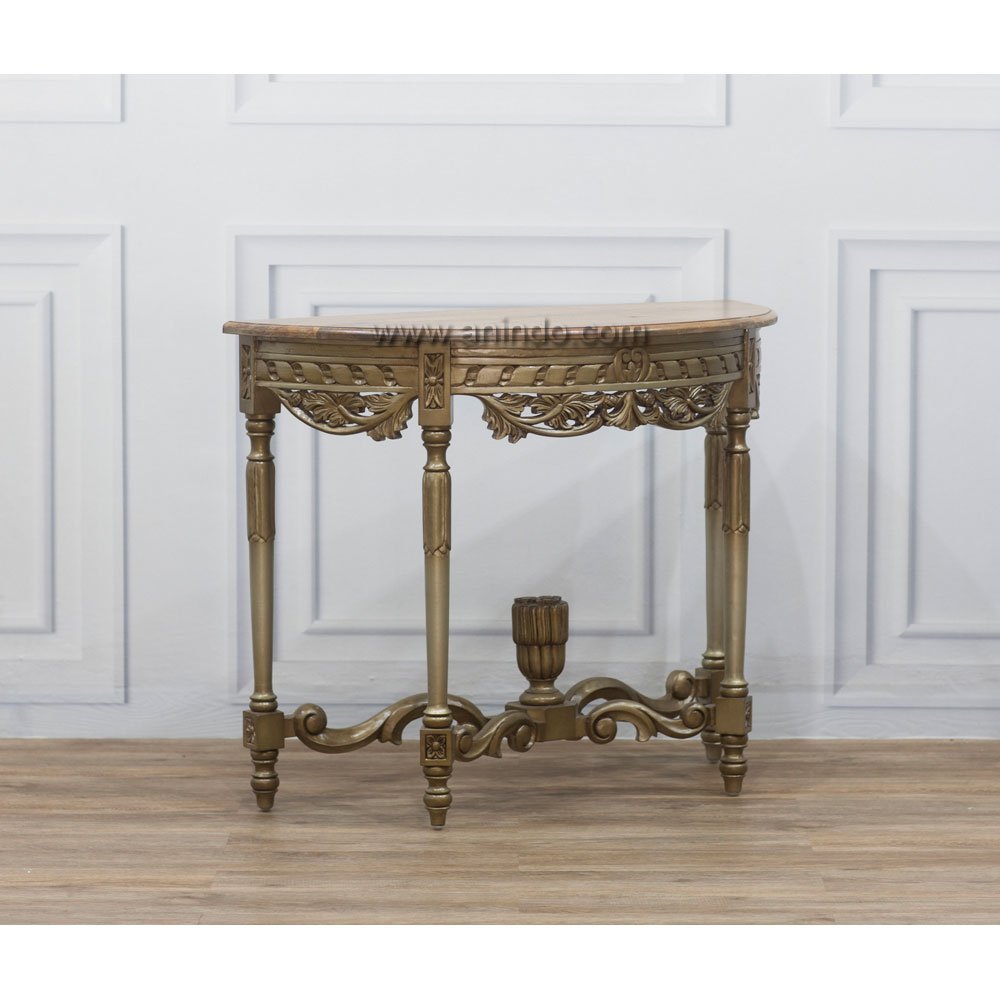 Novosibirsk console table is made of sustainable solid mango wood in antique silver painted finish.