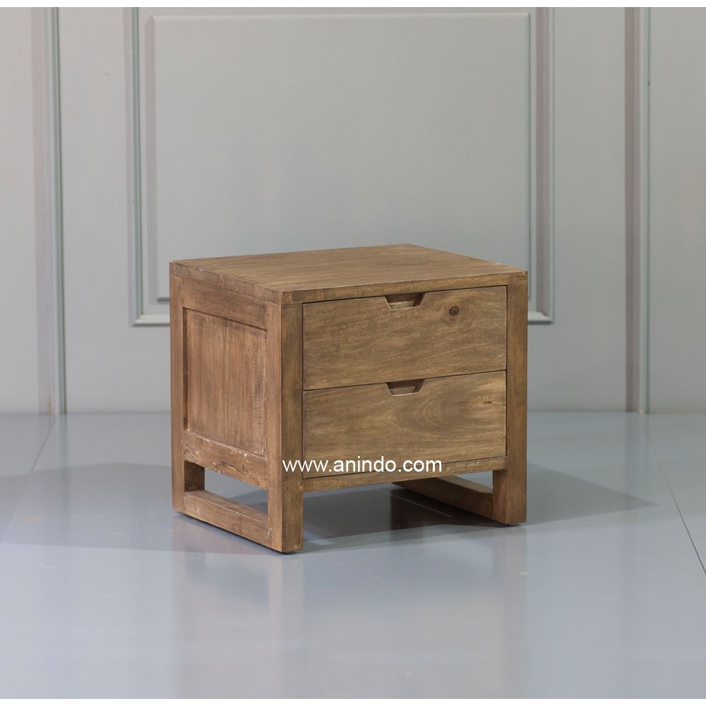 Oregon bedside cabinet 2 drawers is made of solid sustainable mango wood. Antique finish.