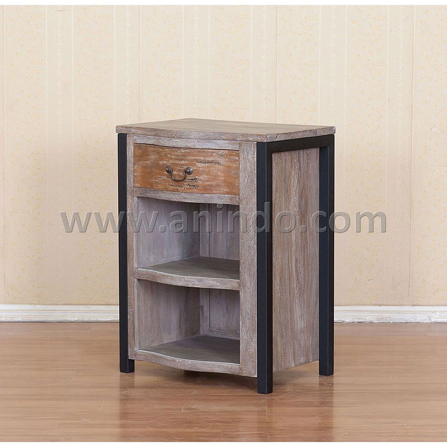 Paris bedside table 1 drawer 2 shelves is made of sustainable mango wood combined with black painted wrought iron in rustic finish.