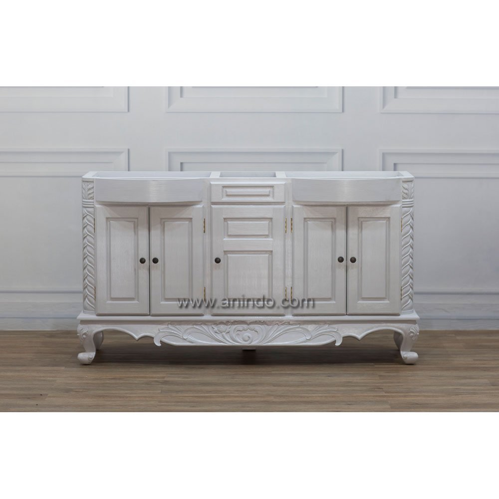 Simply bathroom vanity 5 doors is made of sustainable solid mango wood. Antique white finish. Antique solid brass handles.