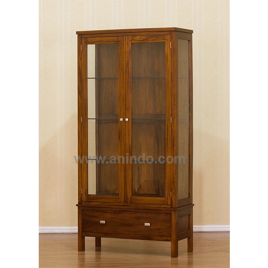 Small bookcase 1 drawer with glass is made of mahogany wood in pecan finish.