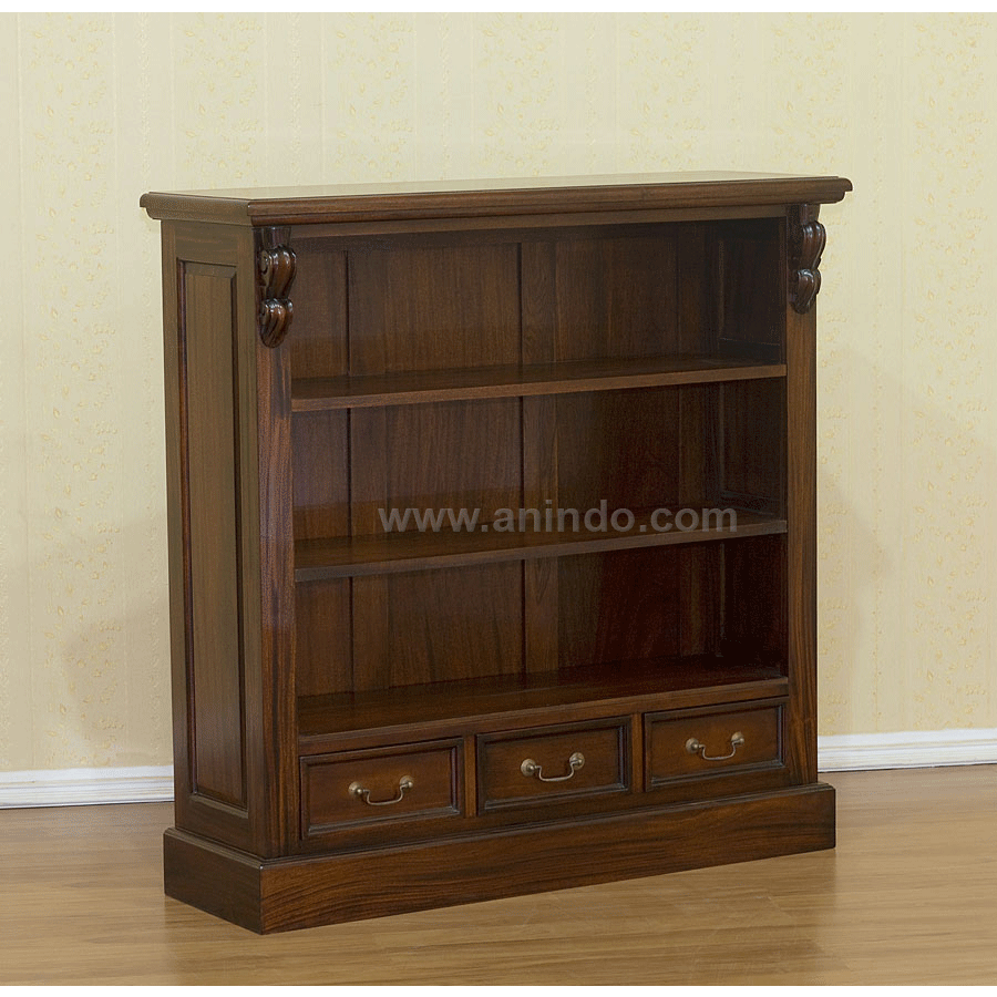 Slim bookcase 3 drawers is made of solid mahogany wood in pecan finish.