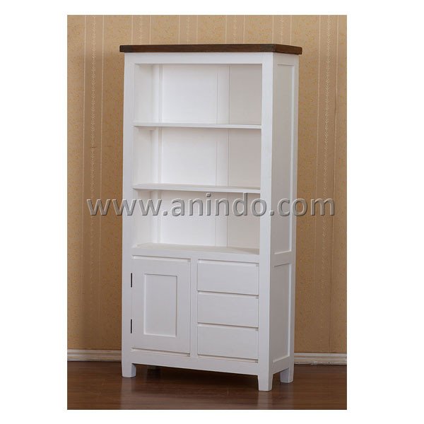 Our rahman open bookcase is made of solid hard wood in white painted finish with vintage solid wood top.