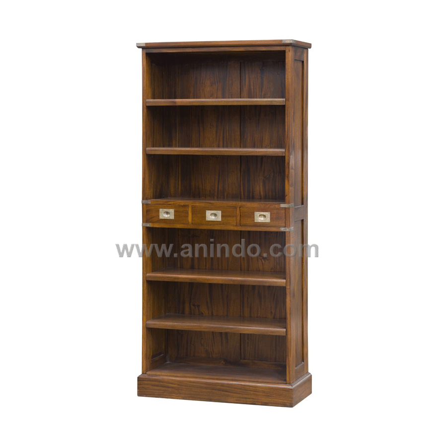 Slim bookcase 3 drawers is made of solid mahogany wood in pecan finish.