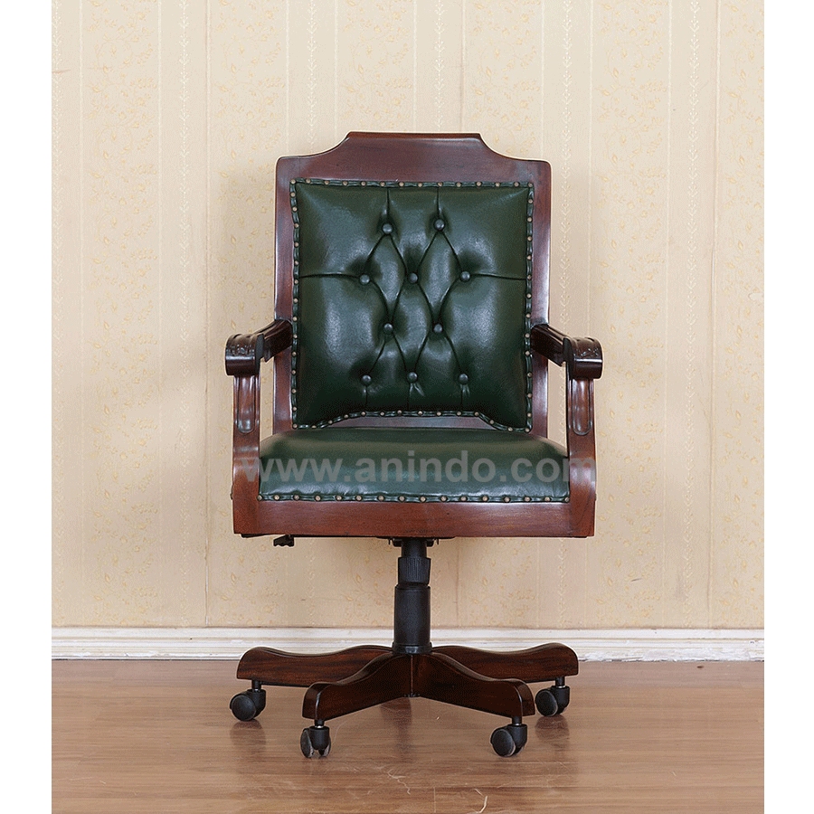 Captain office chair is made of solid mahogany wood in pecan finish. Upholstered in green ...