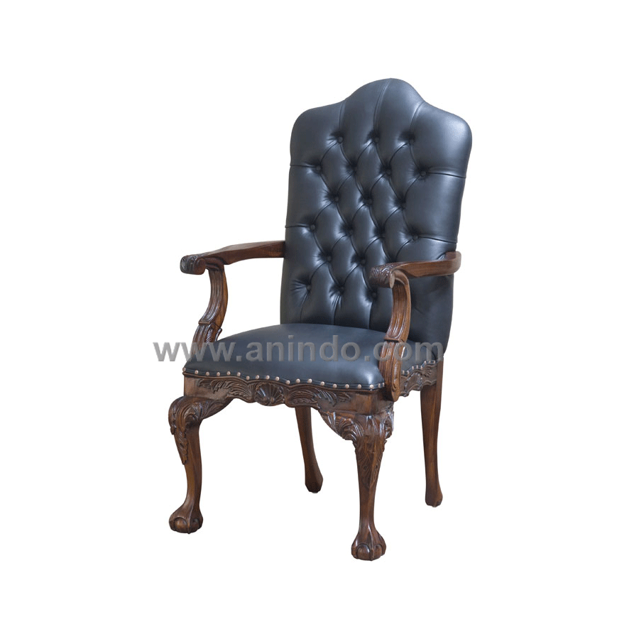 Director carved chair is made of solid mahogany wood in walnut finish. Upholstered in ...