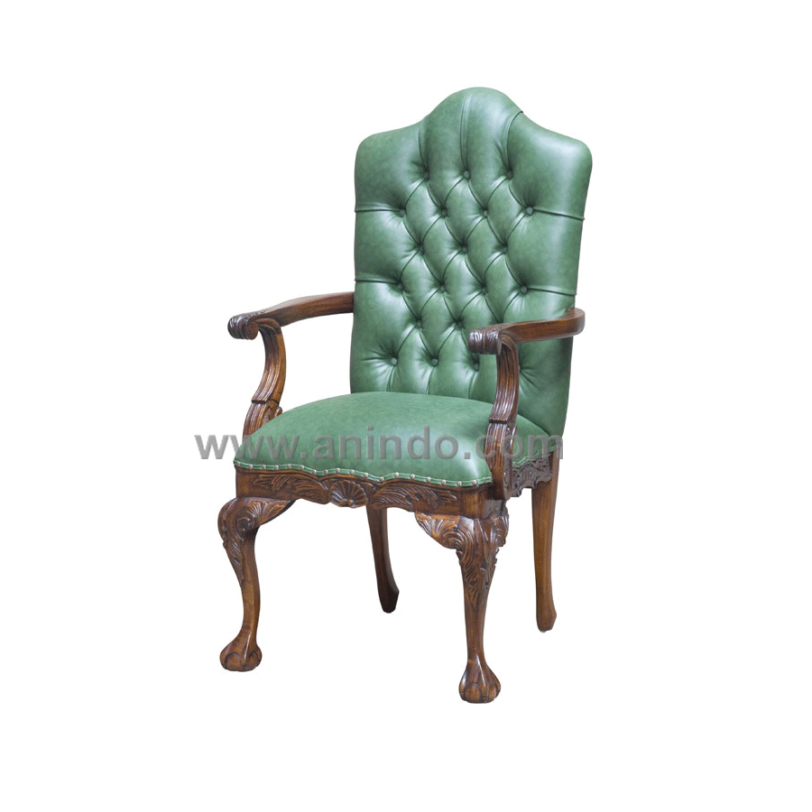Louis desk chair is made of solid mahogany wood in pecan finish. Upholstered in green faux ...