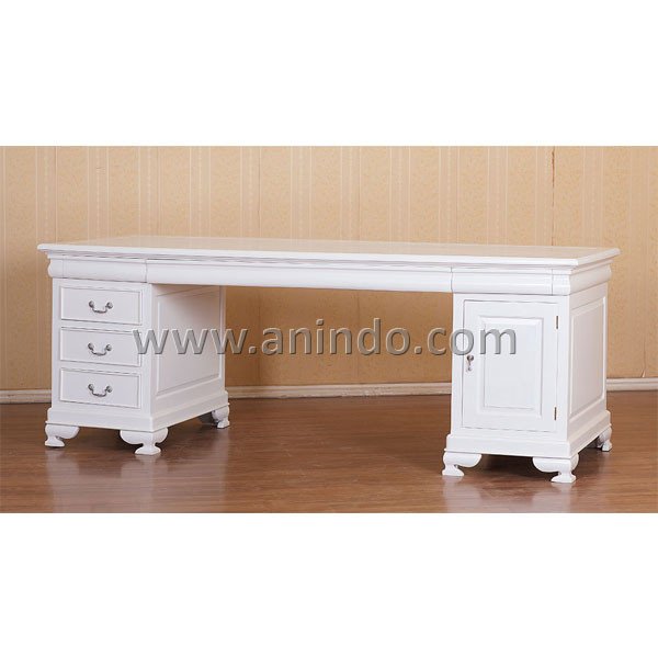 Partner desk 6 drawers with 2 doors is made of solid mahogany wood in white painted ...