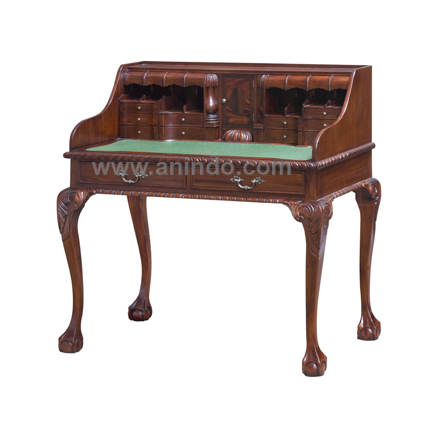 Chippendale writing desk 3 drawers is made of solid mahogany wood in walnut finish. Antique ...