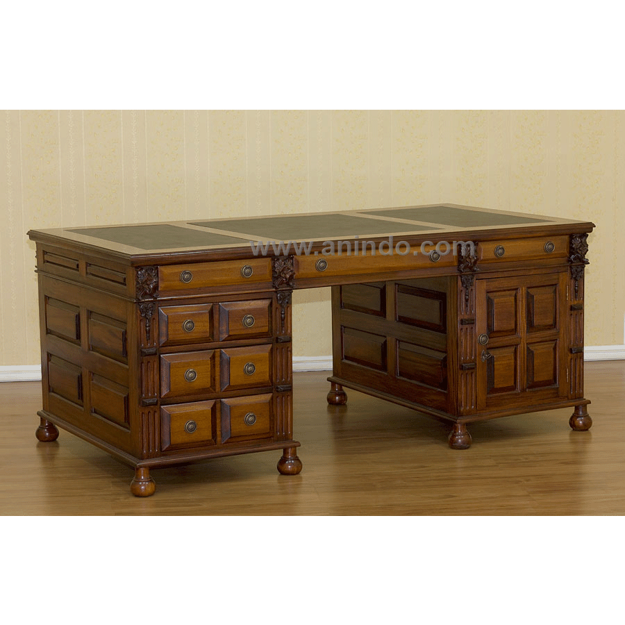 Mirage partner desk 11 drawers is made of solid mahogany wood in pecan finish. Antique ...