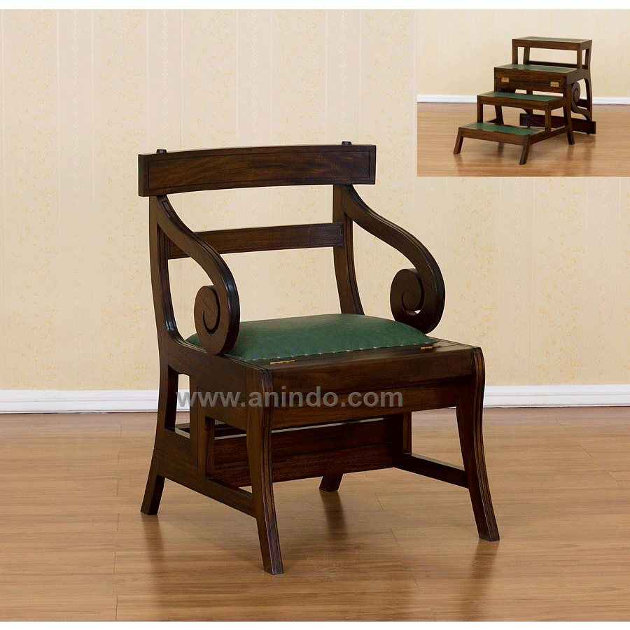 Library chair 3 steps is made of solid mahogany wood in tea brown ...