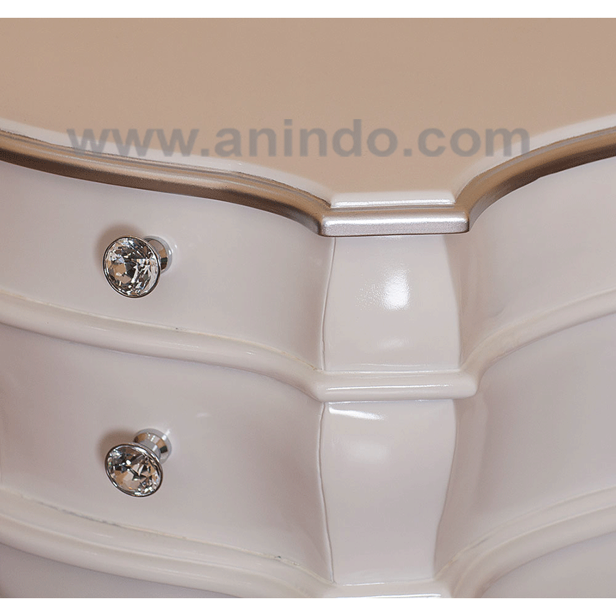 Pony writing table is made of mahogany wood in white combined with silver painted finish. Crystal handles.