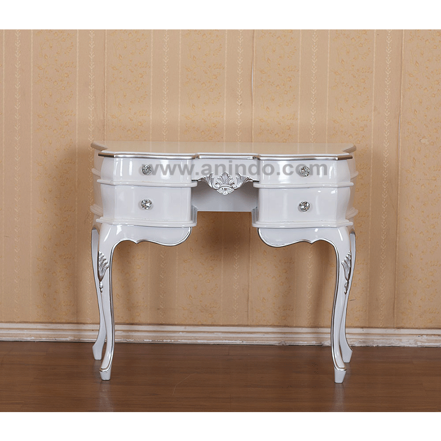 Raline writing table is made of mahogany wood in white combined with silver painted ...